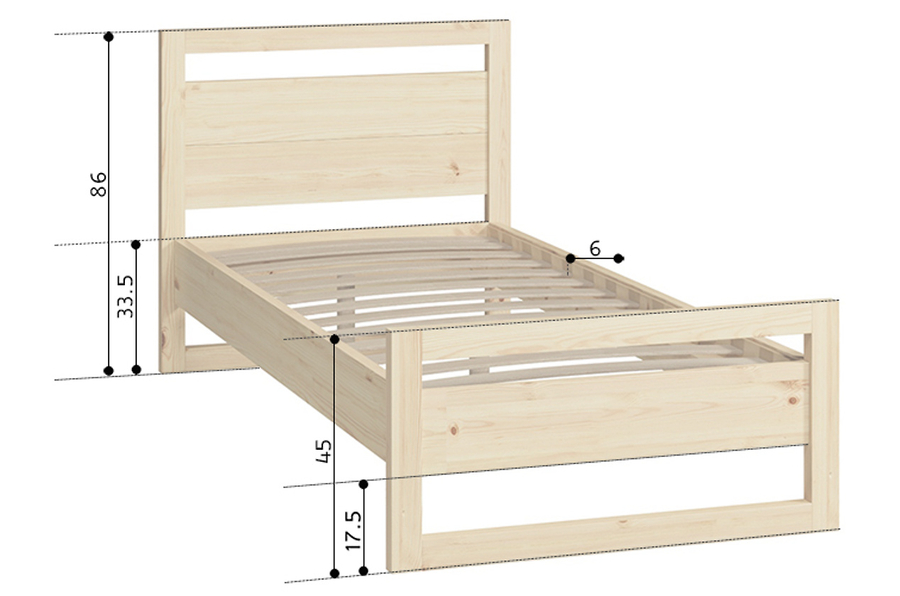 Кровать изготавливается из натурального массива сосны или берёзы.